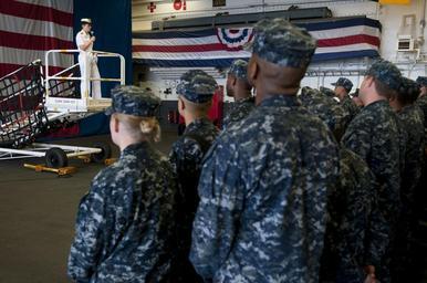 | Keywords: Delivering remarks 120429-N-WS082-015.jpg en Rear Adm Ann Phillips commander Expeditionary Strike Group Two delivers remarks to sailors aboard the amphibious assault ship USS Wasp during Navy Week Port Everglades Wasp is in Port Everglades April 25-30 for the War of 1812 Bicentennial Commemoration Overall there will be about 3 000 sailors and Marines and six ships in attendance The commemoration of the bicentennial of the War of 1812 is a salute to all Sailors and Marines who fought gallantly in that conflict who have served in our nations ™ conflicts since then and who are defending freedom around the world today 2012-04-29 LHD 1 https //www dvidshub net/image/568177 120429-N-WS082-015 2012-04-29 18 50 PORT EVERGLADES FL US PD-USGov-Military-Navy Ann Phillips Images from DoD uploaded by Fæ |