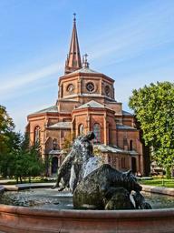 Keywords: deluge fountain bydgoszcz sculpture water figures artwork church poland