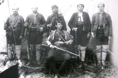 | Keywords: Demir-Hisarska cheta, 1908.jpg mk Една од деми хиса ските чети снимена во дво от на ц квата Св Бого одица Битола 1908 ск шена плоча en One of Demir-Hisar detachments photographed in the churchyard of Ss Virgin in Bitola 1908 Broken glass plate DARM archive 1908 The State Archives of the Republic of Macedonia DARM Bitola Department Creator Yanaki and Milton Manaki other versions Custom license marker 2016 10 04 PD-Macedonia Wikipedian in Residence at DARM Photographs by Manaki Brothers Demir Hisar IMARO |