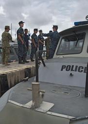 | Keywords: Demonstration of daily operations 130413-N-WF272-085.jpg en U S Navy Master-at-Arms 1st Class Paul Mobley right with a harbor patrol unit explains the duties of harbor security to children with Battleship Missouri Division-Hawaii U S Navy League Cadet Corps April 13 2013 at Ford Island Joint Base Pearl Harbor-Hickam Hawaii Masters-at-arms assigned to security forces harbor patrol and military police working dog units provided demonstrations of their daily operations U S Navy photo by Mass Communication Specialist 3rd Class Diana Quinlan/Released 2013-04-13 Petty Officer 3rd Class Diana Quinlan https //www dvidshub net/image/910289 130413-N-WF272-085 2013-04-19 05 38 JOINT BASE PEARL HARBOR-HICKAM HI US PD-USGov-Military-Navy 2013 in Pearl Harbor People at Joint Base Pearl Harbor-Hickam Images from DoD uploaded by Fæ |