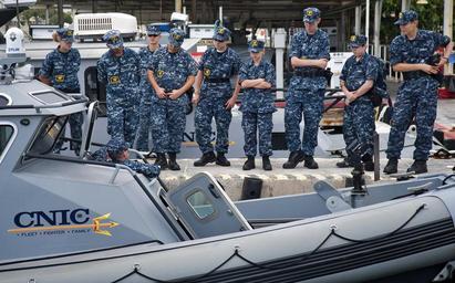 | Keywords: Demonstration of daily operations 130413-N-WF272-245.jpg en U S Navy Master-at-Arms 1st Class Brian Heinkel on the boat assigned to a harbor patrol unit explains the duties of harbor security to children with the U S Navy League Cadet Corps Battleship Missouri Division-Hawaii April 13 2013 at Ford Island Joint Base Pearl Harbor-Hickam Hawaii Masters-at-arms assigned to security forces harbor patrol and military police working dog units provided demonstrations of their daily operations U S Navy photo by Mass Communication Specialist 3rd Class Diana Quinlan/Released 2013-04-13 Petty Officer 3rd Class Diana Quinlan https //www dvidshub net/image/910294 130413-N-WF272-245 2013-04-19 05 38 JOINT BASE PEARL HARBOR-HICKAM HI US PD-USGov-Military-Navy 2013 in Pearl Harbor People at Joint Base Pearl Harbor-Hickam Images from DoD uploaded by Fæ |
