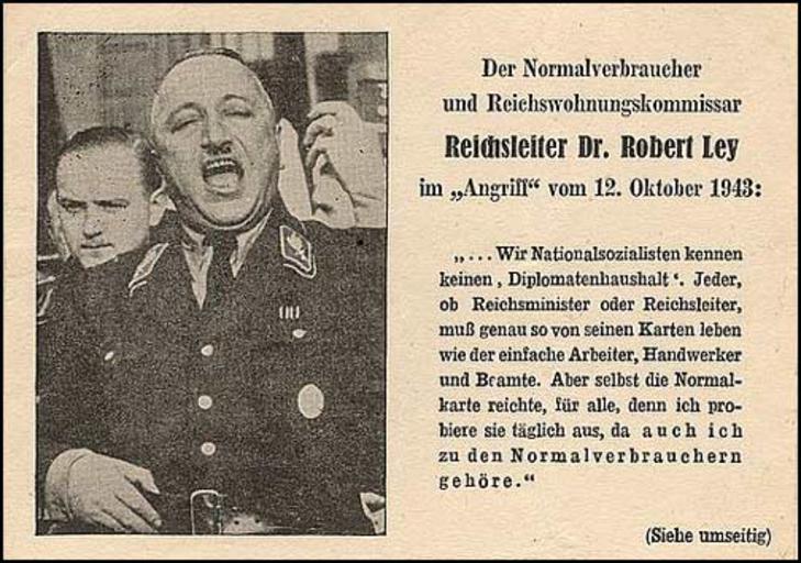 | Keywords: Demoralization Leaflet Robert Ley Postcard front.jpeg  en Front of US Government leaflet attempting to demoralize German enemy by showing that their leadership lived a much better life 1943 http //www psywarrior com/DivideandConquer html Federal Government PD-USGov World War II anti-German propaganda Uploaded with UploadWizard |