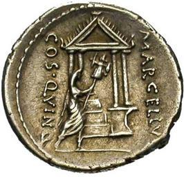 | Keywords: Denarius Publius Cornelius Lentulus Marcellinus 3 Reverse.png ru онета ий Публий Ко нелий Лентул а целлин Выпуск в честь консула Клавдия а целла Дена ий се еб о Дата чеканки 50 г до н э онетный дво Рим вес 4 03 г АВЕРС Обнаженная голова консула Клавдия а целла вп аво; сзади фигу а из т ех ног triscelis спе еди MARCELLINVS имя монета ия РЕВЕРС Тет астильный х ам пе ед кото ым фигу а Клавдия а целла в тоге под пок ывалом несущего т офей По сто онам MARCELLVS COS QVINQ Marcellus consul quinquies http //ancientrome ru/numizm/catalog/coin htm id 1188 Author I century B C Publius Cornelius Lentulus Marcellinus moneyer 50 BC Denarius Marcus Claudius Marcellus consul 222 BC PD-old |