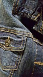 Keywords: denim blue texture denim jacket weave thread fashion clothes clothing collar pocket stitching brand