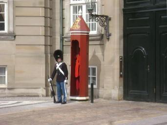 Keywords: Denmark. Capital Region. Copenhagen 283.JPG en Denmark Capital Region Copenhagen own Albertyanks - Albert Jankowski 2010-08-04 Amalienborg Palace Contemporary people of the Danish Army on duty Males with M16 rifle