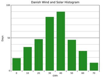 | Keywords: Denmark Wind and Solar Generation Histogram-Equal Annual.svg translate yes en Histogram showing the number of days that wind power and solar power in Denmark would provide a given range of generation during 2015 if an equal total was from wind and solar For this simulation the actual solar generation was multiplied by about twenty to equal the wind generation Data source https //transparency entsoe eu/generation/r2/actualGenerationPerProductionType/show entsoe 2016-05-09 own Delphi234 other versions cc-zero Wind power in Denmark Solar energy in Denmark Histograms |