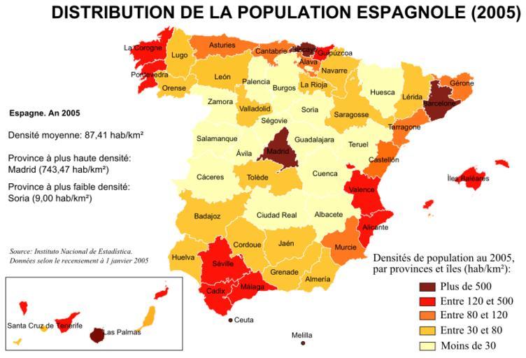 | Keywords: Densités de population en Espagne (2005).png  Carte de l'Espagne montrant les densités de populaton par provinces et îles selon le recensement du 2005 élaboré par lInstituto Nacional de Estadística Il existe aussi une version en espagnol et une version en anglais de cette carte 2006-10-27 own assumed Rodriguillo Population density maps of Spain 2005 maps |