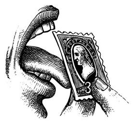 Keywords: dents gross lick licking lips mouth postal sensual sensuality stamp teeth timbre tongue troubling