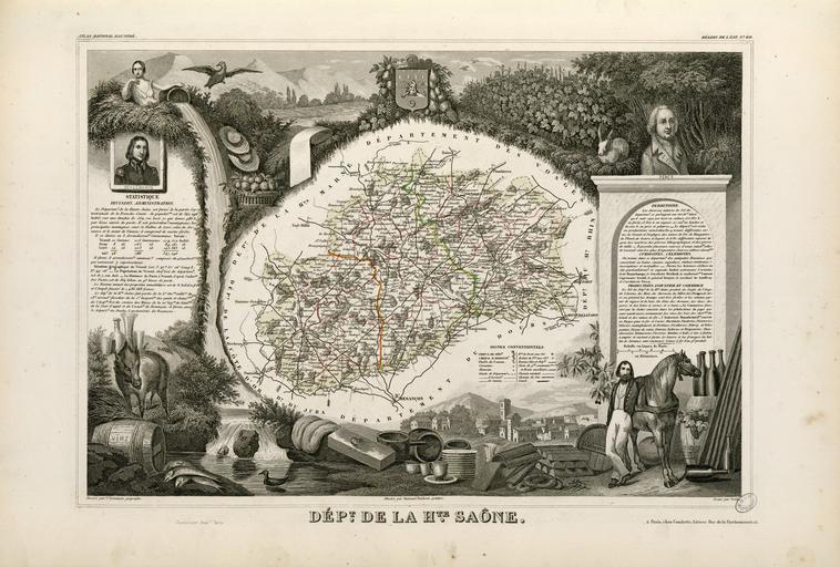 | Keywords: Dépt. de la Haute Saône (région de l'est) - Fonds Ancely - B315556101 A LEVASSEUR 072.jpg Titre complet du recueil Atlas national illustré des 86 Départements et des Possessions de la France divisé par Arrondissements Cantons et Communes avec le tracé de toutes les routes chemins de fer et canaux Dressé d'après les Travaux du Cadastre du Dépôt de la Guerre et des Ponts et Chaussées par V Levasseur Ingénieur Géographe attaché au Génie du Cadastre et de la Ville de Paris Gravé sur acier par les meilleurs artistes Imprimerie de Lemercier à Paris ou imprimerie Dupuich à Paris Page de titre et 100 pl en n et b et en coul dont un tableau statistique et 2 cartes dépliantes Ancely René 1876 - 1966 Possesseur fre public domain domaine public B315556101_A_LEVASSEUR_072 jpg image/jpeg 1 f de pl ; 53 cm Bonheur Raymond 1796-1849 Illustrateur Smith Graveur Combette A Editeur Lemercier 17 -18 ; imprimeur Imprimeur http //numerique bibliotheque toulouse fr/collect/general/index/assoc//ark /74899/B315556101_A_LEVASSEUR_072 dir/B315556101_A_LEVASSEUR_072 jpg Bibliothèque municipale de Toulouse A-LEVASSEUR 70 Creator Victor Levasseur http //catalogues toulouse fr/web2/tramp2 exe/do_keyword_search/log_in setting_key BMT1 servers 1home query p001357 vignette http //numerique bibliotheque toulouse fr/collect/general/index/assoc//ark /74899/B315556101_A_LEVASSEUR_072 dir/B315556101_A_LEVASSEUR_072_thumb jpeg 1854 Dépt de la Haute Saône région de l'est B315556101_A_LEVASSEUR_072 print - colors - steel engraving Glass sculptures Engravings of bottles Fonds Ancely Wine barrels in art Dishes Coats of arms of Vesoul Old maps of Haute-Saône Metal nails Iron Boars in art Ingots Fruit in art Pierre-François Percy Victor Levasseur - Maps of France Hats in art Roof tiles Baskets in art Wine maps Rivers in art |
