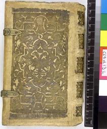 | Keywords: Der Christen Lustgarten. Darinnen die Artickel der -Christlichen Lere. - Lower cover (c65d13).jpg Style Armorial Panel design; Caption Lower cover; Colour White / cream; Edge Unspecified exhibition history Decorative Technique Panel stamp in gold; Cover Material Pigskin alum tawed With 2 pairs of clasps object history Text 1573; Wittenberg; Unspecified object type Cc-zero place of creation Binding Germany place of discovery Unspecified British Library image http //www bl uk/catalogues/bookbindings/LargeImage aspx RecordId 020-000007860 ImageId ImageId 43535 Copyright BL Der Christen Lustgarten Darinnen die Artickel der Christlichen Lere Uploaded with GWToolset Der Christen Lustgarten Darinnen die Artickel der Christlichen Lere - Lower cover c65d13 http //www webarchive org uk/bldatasets/bindings/8383_4 jpg Bookbinding 16th-century bookbinding British Library Bookbindings |