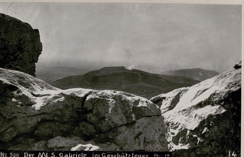| Keywords: Der Monte San Gabriele im Geschützteuer (BildID 15737292).jpg depicted place austria de K u k Kriegspressequartier Lichtbildstelle - Wien credit line Österreichische Nationalbibliothek - Austrian National Library http //www bildarchivaustria at/Preview/15737292 jpg<br>Catalog http //www bildarchivaustria at/Pages/ImageDetail aspx p_iBildID 15737292 accession number WK1/ANNEX009/00007 http //creativecommons org/publicdomain/mark/1 0/ el Α΄ Παγκόσμιος Πόλεμος en World War I zh 第 次世界大战 ca Primera Guerra Mundial it Prima guerra mondiale cs První světová válka cy Y Rhyfel Byd Cyntaf hy Առաջին համաշխա հային պատե ազմ ga An Chéad Chogadh Domhanda eu Lehen Mundu Gerra et Esimene maailmasõda gl Primeira Guerra Mundial es Primera Guerra Mundial ru Пе вая ми овая война az Birinci dünya müharibəsi pt Primeira Guerra Mundial no Første verdenskrig tr I Dünya Savaşı lv Pirmais pasaules karš lt Pirmasis pasaulinis karas ro Primul Război Mondial ar الحرب العالمية الأولى is Fyrri heimsstyrjöldin pl I wojna światowa yi ערשטע ווע ט מ חמה be Пе шая сусветная вайна fr Première Guerre mondiale bg Пъ ва световна война hr Prvi svjetski rat de Erster Weltkrieg hu Első világháború hi प्रथम विश्वयुद्ध bs Prvi svjetski rat fi Ensimmäinen maailmansota da 1 verdenskrig ja 第 次世界大戦 he מ חמת העו הראשונה ka პირველი მს ფლი მი sr П ви светски ат sq Lufta e Parë Botërore ko 1차 세계 전 sv Första världskriget mk П ва светска војна sk Prvá svetová vojna gd An Cogadh Mòr uk Пе ша світова війна sl Prva svetovna vojna PD-old-80-1923 Kriegspressequartier Alben 1914 - 1918 Images uploaded by Fæ Škabrijel |