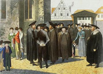 | Keywords: Der Samstug (Saturday).jpg Der Samstag Saturday Germany c 1800 Handcolored engraving Hebrew Union College Skirball Museum Los Angeles Based on a Frederich Campe painting it depicts Jews gathered outside a synagogue on the Sabbath The men are wearing flat round hats called baretta The eight-pointed star on the corner of the synagogue is a traustein From Jewish Art edited by Grace Cohen Grossman ISBN 0-88363-695-6 p 172 Copied with a Canon EOS Digital Rebel with EF 50mm f/1 8 mounted on a copy stand at the UConn art department ISO 100 f/8 1/25s To avoid blurring all rotation and perspective correction was done with Hugin as a frontend to the nona stitching engine using the Sinc1024 interpolator The image was then cropped and level-adjusted with Gimp and saved with a JPEG quality of 0 9 PD-Art Judaism in art Shabbat Synagogues in art Created with Hugin Artworks missing infobox template Days in art |