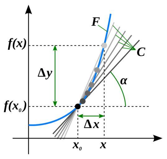Keywords: Derivative of a function.svg en This picture illustrates how a function changes as its input changes derivative ru Иллюст ация понятия п оизводной функции 2012-10-22 21 45 12 own Rabdulatipoff cc-zero Differentiability functions
