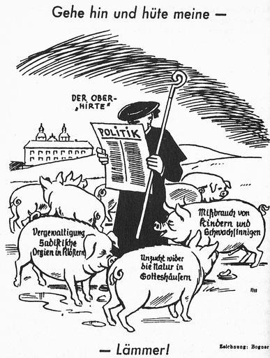 | Keywords: DerOberHirte.jpg ru Ка икату а на католического священника в нацистской газете Das Schwarze Korps от 06 05 1937 Отскани овано из книги Günter Grau Homosexualität in der NS-Zeit 2004 ст 178 de Zeichnung aus der Nazizeitung Das Schwarze Korps vom 6 Mai 1937 Gescannt vom Günter Grau Homosexualität in der NS-Zeit 2004 S 178 1937-05-06 12 29 00 Das Schwarze Korps 06 05 1937 Bogner PD-old Roman Catholicism in Germany LGBT history in Germany Nazi propaganda Das Schwarze Korps 1937 cartoons | ||||
