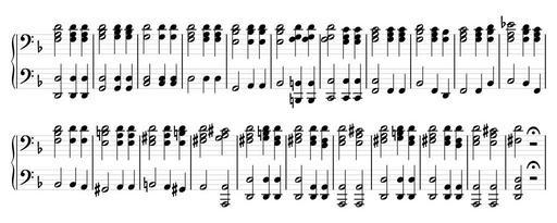 | Keywords: DerTodUndDasMadchen-D531-Piano-DerTod.svg Death song piano accompaniment from Franz Schubert's lied Death and the Maiden D 531 LilyPond source <pre> \header title Der Tod und das Mädchen D 531 subtitle Death song's piano accompaniment source IMSLP16210 Eusebius Mandyczewski composer Franz Schubert 1797-1828 copyright Public Domain \version 2 10 \score \new PianoStaff \with \override VerticalAlignment 'forced-distance 7 << \new Staff \clef bass \key f \major \time 2/2 \tempo 2 54 \override Score MetronomeMark 'padding 3 <f a d'>2 <f a d'>4 <f a d'>4 <g bes d'>2 <g bes d'>4 <g bes d'>4 <g d'>2 <g d'>4 <g d'>4 <f a d'>2 <f a d'>4 <f a d'>4 <e bes d'>2 <e bes d'>4 <e bes d'>4 <e bes d'>2 <f g d'>4 <f g d'>4 <f g d'>2 <e g c'>4 <e g c'>4 <f a c'>2 <f a c'>4 <f a c'>4 <f bes d'>2 <f a c'>4 <f bes>4 <f a c'>2 <f a c'>4 <f bes d'>4 <f a ees'>2 <f bes d'>4 <f a c'>4 \break <f bes d'>2 <f d'>4 <f d'>4 <e b d'>2 <e a d'>4 <e a d'>4 <e gis d'>2 <e a d'>4 <e b d'>4 <fis a d'>2 <g a cis'>2 <fis a d'>2 <g b d'>4 <e g d'>4 <fis a d'>2 <e g d'>4 <d fis d'>4 <e g d'>2 <e a cis'>2 <fis a d'>2 <g b d'>4 <e g d'>4 <fis a d'>2 <e g d'>4 <d fis d'>4 <e g d'>2 <e a cis'>2 <fis d'>2 r2\fermata \new Staff \clef bass \key f \major \time 2/2 <d d>2 <d d>4 <d d>4 <g d>2 <g d>4 <g d>4 <bes d>2 <bes d>4 <bes d>4 d2 d4 d4 g 2 a 4 a 4 bes 2 <b b >4 <b b >4 <c c>2 <c c>4 <c c>4 <f c>2 f 4 f 4 bes 2 f 4 d 4 f 2 f 4 bes 4 c2 bes 4 f 4 \break bes 2 bes 4 a 4 gis 2 a 4 a 4 b 2 a 4 gis 4 a 2 <a a >2 <d d>2 <d d>4 <d d>4 <d d>2 <d a >4 <d a >4 <a a >2 <a a >2 <d d>2 <d d>4 <d d>4 <d d>2 <d a >4 <d a >4 <a a >2 <a a >2 <d a d>2 r2\fermata >> \midi \context \Score tempoWholesPerMinute ly make-moment 54 4 </pre> SVG generated from LilyPond output Rework with Inkscape removed text and converted all objects to paths then saved as simple SVG en Death and the Maiden piano accompaniment from Death's song to the end Taken from Franz Schubert's lied D 531 Op 7 No 3 fr La Jeune Fille et la Mort accompagnement aux piano du choral de la Mort jusqu'à la fin Tiré du lied de Franz Schubert D 531 Op 7 n°3 Own Romainbehar 2008-09-28 GNU LilyPond images Compositions by Franz Schubert Homophony |