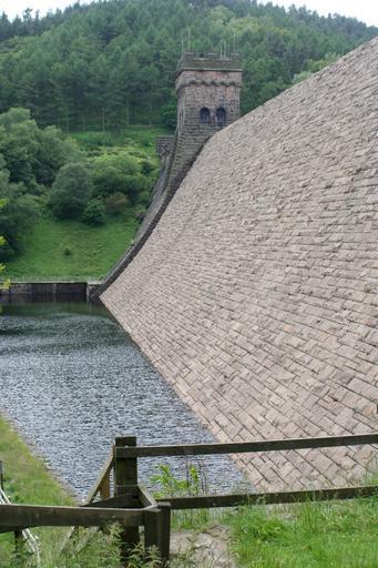 Keywords: Derwent Dam, lower.jpg The lower side of Derwent Dam on Derwent Reservoir Derbyshire England Viewed looking west Own 2007-06-19 Dave Pape PD-user Davepape Derwent Dam