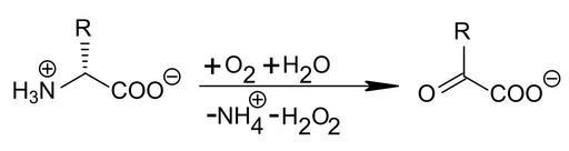 | Keywords: Desaminierung.svg Desamination of a D-amino acid with D-amino acid oxidase Die Desaminierung von Alpha-Aminosäuren unter dem katalytischen Einfluss von D-Aminosäureoxidase own made with Inkscape and BKChem 2012-09-21 Kuebi Armin Kübelbeck Oxidoreductases reactions EC 1 4 3 |