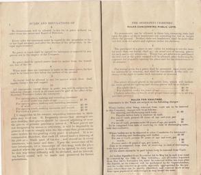 | Keywords: 1880s cemeteries deseronto cemetery deserontocemetery rules text document writing indoor monochrome "4. No disinterest will be allowed in any lot or grave without an order from the owner and Board of Directors. 5. Every order for interment must be signed by the proprietor or his or her legal attorney; and after the decease of the proprietor, by the legal representative. 6. No grave or tomb shall be opened for interment or removal by any person not in the employ of the Company. 7. No grave shall be opened nearer than six inches from the boundary line of the lot. 8. When more than one interment is made in the same grave, the last shall be at least five feet below the surface of the ground. 9. No burial shall be allowed in any lot against which there shall appear charges due and unpaid. 10.All interments, except those in public lots, will be subject to the following charges, which in all cases must be paid at the office of the Secretary-Treasurer before the interment: For opening graves, making and recording interment of child under ten years of age …………………$1 50 For opening grave, making and recording interment of adult ……………………………………………$ 2 00 For opening tomb, making interment and record.. $2 00 For turfing a grave ……………………………$ 0 50 A suggestion to lot owners respecting interments in their plats may be of use. It frequently occurs that messages are sent desiring that graves should be opened adjoining or near the graves of persons previously interred. Where graves are not designated by stones or otherwise, it will be impossible in process of time to comply with the directions thus given unless some system for designating every grave is adopted. It is recommended, therefore, that each lot owner make a drawing of his plat on a blank part of his deed, and record on it every interment, with name and date. Upon the occurrence of future interments, let a transcript of this map, with the place marked where the grave is desired to be opened, be duly sent. In this way every difficulty will be obviated, and an interesting family record will be made and preserved for future generations. Rules Concerning Public Lots 1. No monuments can be allowed in these lots, excepting slabs laid upon the grave or thick headstones not exceeding two feet in height above the ground. Neither slabs nor headstones shall be more than two feet wide for adults and eighteen inches for children. 2. The purchaser of a grave in any public lot wishing to use the same for more than one burial shall pay the usual cost of opening graves for each and every interment. Where lots are afterwards purchased the full cost of the grave vacated will be allowed, after deducting the expenses for originally opening the grave and for the disinterment of the remains. 3. The receipt given for a grave shall be presented upon every order for interment or removal, and shall be considered as the only evidence of the right to make such interment or removal. 4. The prices of single graves in the public lots, which will include the usual prices for opening and closing graves, will be as follows: For adults each …………….$5 00 For children under ten years of age…….$3 00 (Tickets admitting family at all proper times are given to all who purchase graves) Rules For Vaultage 1. Interments in the vault are subject to the following charges Where bodies, after being removed from vault are to be interred in this Cemetery, charges will be as follows: For entering and discharging each body…..$1 00 Payable before body is received in vault. For use of vault, persons 10 years of age and over, per month …50 For use of vault, persons under 10 years of age, per month …….25 To be computed from date of receiving to date of discharging same, both days inclusive. 2. Where bodies are to be removed to other Cemeteries for interment: For receiving and discharging said bodies ………………………$ 2 00 For use of vault, persons 10 years of age and over, per month..1 00 Persons under 10 years of age, per month ………………………. 50 Time to be computed from date of receiving to date of discharging, both days inclusive. All the above claims to be paid before body is removed from Vault. 3. All bodies deposited from November 1st to May 1st in each year must be removed by the 15th of May in each year must be removed by the 15th of May following: and all bodies deposited from May 1st to November 1st, must be removed within ten days after the deposit, or the removal will be performed by the Superintendent, and the bodies interred in grounds especially appropriated for the purpose, where they can be readily identified, and removal made at any time upon payment of such charges as may attend the same." "4. No disinterest will be allowed in any lot or grave without an order from the owner and Board of Directors. 5. Every order for interment must be signed by the proprietor or his or her legal attorney; and after the decease of the proprietor, by the legal representative. 6. No grave or tomb shall be opened for interment or removal by any person not in the employ of the Company. 7. No grave shall be opened nearer than six inches from the boundary line of the lot. 8. When more than one interment is made in the same grave, the last shall be at least five feet below the surface of the ground. 9. No burial shall be allowed in any lot against which there shall appear charges due and unpaid. 10.All interments, except those in public lots, will be subject to the following charges, which in all cases must be paid at the office of the Secretary-Treasurer before the interment: For opening graves, making and recording interment of child under ten years of age …………………$1 50 For opening grave, making and recording interment of adult ……………………………………………$ 2 00 For opening tomb, making interment and record.. $2 00 For turfing a grave …………