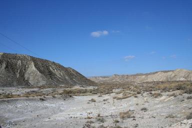 Keywords: desert arid dry landscape volcanic rock desert landscape sunny blue sky mountain land geological geology panorama spain andalusia