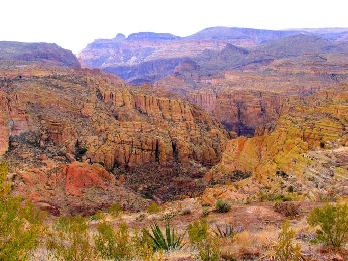 Keywords: desert landscape hazy rocks colorful mountains hills scenic vegetation wilderness tonto national forest arizona usa rugged geology noaa panorama dry nature valleys scenery
