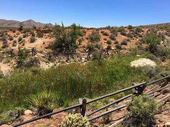 Keywords: desert springs desert spring fence cactus nature landscape environment hot mountain rock natural oasis red stone dry sand usa canyon vegetation