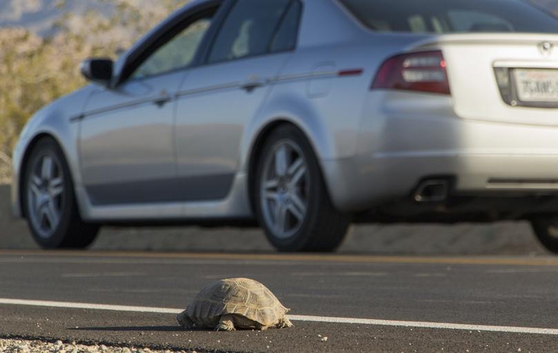 Keywords: joshua tree joshuatree national park nationalpark california mojave desert tortoise gopherus agassizii gopherusagassizii road outdoor vehicle car NPS/Brad Sutton NPS/Brad Sutton