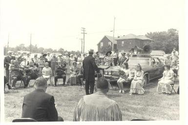 | Keywords: 1970s events celebrations summer outdoor Photograph of Mayor Jim (James) Sharpe, addressing the audience at the unveiling of the plaque in Centennial Park, Deseronto, Ontario, on Saturday, 19th June, 1971. Photograph possibly taken by Lloyd Thompson for The Quinte Scanner. Photograph of Mayor Jim (James) Sharpe, addressing the audience at the unveiling of the plaque in Centennial Park, Deseronto, Ontario, on Saturday, 19th June, 1971. Photograph possibly taken by Lloyd Thompson for The Quinte Scanner. |