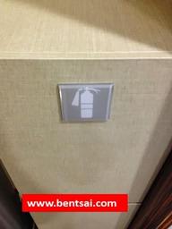 I spotted this inconspicuous fire safety sign (Chinatown point - Library - 133 New Bridge Rd, #04-12 , Chinatown, Singapore 059413) that blends with the background that makes it hard to identify the location of the fire extinguisher from a reasonable distance away.