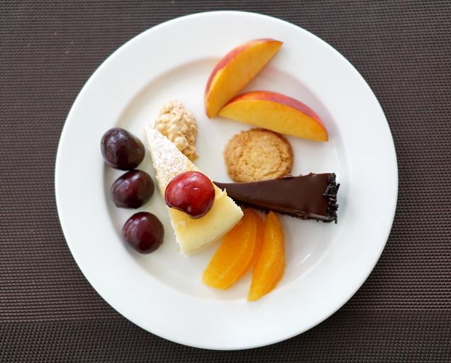 Keywords: dessert fruit cake plate cherry confectionery chocolate brownie cheesecake peach tapi rouge