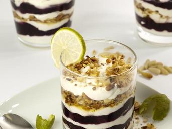 Keywords: dessert milk product delicious sweet berries food eat white milk fruits yogurt fruit frisch cream healthy vitamins blue grapes blue blueberries