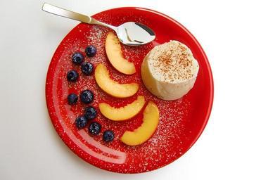 Keywords: dessert pudding fruit cream blueberries peach sweet