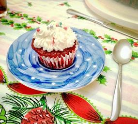 Keywords: dessert red velvet cake ponquesito cupcake served picnic