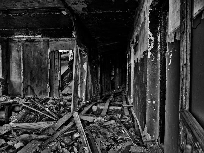 Keywords: destroyed broken empty fire house abandoned blackandwhite monochrome abstract texture forest landscape surreal black and white Destroyed by fire Destroyed by fire