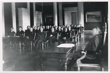 Keywords: quisling andre verdenskrig andreverdenskrig krigen okkupasjonstiden second world war secondworldwar vidkun quisling vidkunquisling blackandwhite black and white Ørnulf Lundesgaard Ralph Fossum, Carl Haakon Langlie, Carl Frølich Hanssen Herman Harris Aall og Thorleif Dahl. Møtet fant sted på Slottet. De navngitte personene sitter på første rad fra venstre, Vidkun Quisling til høyre. RA/PA-1267/Fa/0008/05 1042 Ørnulf Lundesgaard Ralph Fossum, Carl Haakon Langlie, Carl Frølich Hanssen Herman Harris Aall og Thorleif Dahl. Møtet fant sted på Slottet. De navngitte personene sitter på første rad fra venstre, Vidkun Quisling til høyre. RA/PA-1267/Fa/0008/05 1042