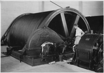 | Keywords: Detail of hoist drum and motor, 150-ton cableway hoist house - NARA - 293939.jpg Scope and content Photograph from Volume Two of a series of photo albums documenting the construction of Hoover Dam Boulder City Nevada General notes 293939 Local identifier Department of the Interior Bureau of Reclamation Engineering and Research Center 05/18/1981 - 03/04/1988 NARA's Rocky Mountain Region Denver NRGA Building 48 Denver Federal Center West 6th Avenue and Kipling Street Denver CO 80225-0307 1933-08-29 Record group Record Group 115 Records of the Bureau of Reclamation 1889 - 2008 Record group ARC 444 Photograph albums compiled 1903 - 1972 Series ARC 293611 File unit File unit ARC Variant control numbers NAIL Control Number NRG-115-CONSTPHO85006-BC21927 Other versions <gallery> File Detail of hoist drum and motor 150-ton cableway hoist house - NARA - 293939 tif tif </gallery> Key Lidgerwood NARA-cooperation PD-USGov Cableway stations 1933 Six Companies Inc cableways at Hoover Dam construction site Hoist house interior 1933 in the United States |