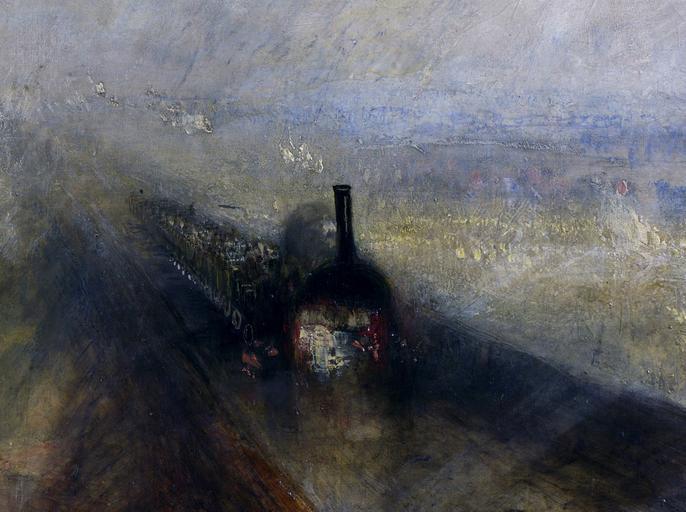 | Keywords: Detail Rain, Steam and Speed – The Great Western Railway.jpg Artwork Detail Rain Steam and Speed - The Great Western Railway; the painting depicts an early locomotive of the Great Western Railway crossing the River Thames on Brunel's recently completed Maidenhead Railway Bridge The painting is also credited for allowing a glimpse of the Romantic strife within Turner and his contemporaries over the issue of the technological advancement during the Industrial Revolution see below Regen Dampf und Geschwindigkeit der Zug »Great Western« Lluvia vapor y velocidad El gran ferrocarril del Oeste Pluie Vapeur et Vitesse - Le Grand Chemin de Fer de l Ouest Pioggia vapore e velocità Дождь па и ско ость 1844 Oil on canvas cm 91 121 8 original Institution National Gallery London 34 credit line Turner Bequest 1856 NG538 taken from file File Rain Steam and Speed The Great Western Railway jpg 2013-03-26 11 19 07 See below other versions PD-old-100 Uploaded with UploadWizard Rain Steam and Speed The Great Western Railway |