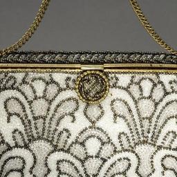 | Keywords: Detalj, Aftonväska, Jolles original - Livrustkammaren - 67950.tif Aftonväska som är helt täckt med ett pärlbroderi Glaspärlorna diam 1 mm bildar ett liljemönster i färgerna benvitt ljust och mörkt nougat samt bärnstensfärg <br/>Väskans öppning av gulmetall har en hävstångstryckknapp diam 21 mm Den är kantad med gulmetall och har en inre del av små pärlor Knappen fodrad med ljust sämskskinn <br/><br/>Väskan bärs i kedja av små länkar av gulmetall <br/>Väskans foder av benvitt siden har två sidofack <br/>I ett fack ligger en spegel längd 88 mm höjd 58 mm <br/>I ett av väskan övre hörn sitter en etikett med tillverkarens namn <br/> Jolles // ORGINAL // MADE IN AUSTRIA original caption Detalj Aftonväska Jolles original LRK 11956<br/> Nyckelord Aftonväska Detalj Sibylla Pärlor Glaspärlor Den oumbärliga väskan Jolles Föremålsbild decade other date - 1930 1940 pearls Färg glas bärnsten material pärlor - brass - silk Färg vit material siden g 367 size mm 205 153 LRK Sibylla hertiginna av Västerbotten Prinsessor Den oumbärliga väskan 2008-2009 Jolles original Made in Austria Jolles Jolles original Made in Austria Jolles place of origin original filename lm_dig6130 48568 inventory number LRK 11956 67950 CC-BY-SA Göran Schmidt Göran Schmidt Princess Sibylla of Saxe-Coburg and Gotha Bags Handbags Media contributed by LSH unmatched keyword Color images from Livrustkammaren Media contributed by LSH 2013-10 |
