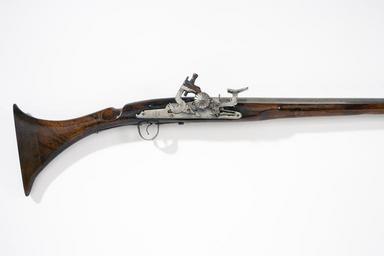 Keywords: Detalj lås-stock snapplåsbössa - Livrustkammaren - 40616.jpg Rund slätborrad pipa av stål Kulissikte av stål stolpkorn av silver Tre pipband av mässing med graverad dekor av rankor och blad mot punsad botten <br/><br/>Snapplås av engelsk-holländsk typ med plant låsbleck baktill format till ett odjurshuvud samt sju inslagna ringar placerade cirkelformigt Rund skärm för eldstålet med radiell ornering Käkskruven mörkanlöpt Hane och eldstålsarm konturerade <br/><br/>Brun helstock av valnöt med muskötliknande kolv Varbygel av stål med släta långa armar <br/><br/>Tillbehör <br/>Laddstock fasttorkad original caption detalj lås-stock snapplåsbössa - LRK 7679 steel - silver - brass - walnut size mm 1947 size mm 1560 pipa size mm 214 g 4410 LRK place of origin original filename lm_dig2518 44286 inventory number LRK 7679 40616 CC-BY-SA Göran Schmidt <gallery caption Different images of same object > File Detalj stock snapplåsbössa v sida - Livrustkammaren - 49174 jpg File Snapplåsbössa arabisk typ - 7679 - Livrustkammaren - 68514 tif </gallery> Göran Schmidt Musket images from Livrustkammaren color images Flintlock muskets images from Livrustkammaren Media contributed by LSH dim-with multiple size templates Color images from Livrustkammaren Media contributed by LSH 2013-10