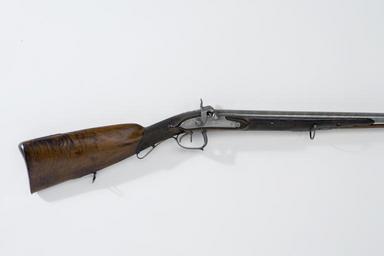 | Keywords: Detalj slaglåsdubbelbössa - Livrustkammaren - 5419.jpg Damaskerad dubbelpipa med överliggande skålad spång på kammarens sidor fastlödda snäckor och på undersidan inslaget H L tre gånger B P två gånger samt 44 På h sida en oval stämpel ELG En rundad rörka <br/>Baskyl med rundat baskylblad med graverade blad bladformig ändplatta <br/>Riktmedel Kraftigt skålat sikte på baskylen <br/>Fästning Två häften för engelska pipstift Pipan fäst med baskylhakar samt två engelska pipstift av stål <br/><br/>Två flintlås ändrade till slaglås Plana låsbleck med fasade kanter på v lås graverat Guillaume på h Berleur S-formiga platta hanar med fasade kanter runt nötskruvarna svarvade ringar Nätskurna tumgrepp <br/>Fästning Två låsskruvar från v sida <br/>Dubbla avtryckare Konturerat avtryckarbleck <br/><br/>Brun halvstock av valnöt Engelsk kolv med kindstöd samt nätskuren kolvhals och förstock i nätmönstret inslaget stålstift Under kolven en oval mässingsplåt med graverat nr 6 <br/>Beslag av stål Bakplåt med flik på kolvryggen Rundad rörka med profilerad graverad spets Varbygeln bakåt utdragen och graverad med blad och blommor Rund hög framstolpe kluven bakstolpe Fri delvis dubbel bakre arm med spetsig bladformig ände Främre armens avslutning liknande en ananans med bladknippe Vid spetsrörkan och under kolven u-formiga rembyglar av stål <br/><br/>Tillbehör <br/>Laddstock av trä l 845 mm framtill skodd med konisk hornskoning l 26 mm i andra änden ett mässingsrör l 36 mm med en spiralvriden stålkrats l 38 mm original caption detalj slaglåsdubbelbössa - LRK 3847<br/> Nyckelord Bössa Föremålsbild early other date century 19 walnut e3 - eldvapen - stock material valnöt - steel e1247 - eldvapen - pipa lås riktmedel och beslag material stål size mm 201 g 3040 size mm 842 pipa size mm 1244 LRK Gustaf V av Sverige Oskar I av Sverige-Norge Guillaume Berleur anv e2 - eldvapen - lås; Guillaume Berleur Beurleur B P anonym kontrollör E L G stjärna i oval Stöckelnr 1494 anv e1 - eldvapen - pipa; anonym kontrollör H L anv e1 - eldvapen - pipa; anonym kontrollör Guillaume Berleur anv e2 - eldvapen - lås; Guillaume Berleur Beurleur B P anonym kontrollör E L G stjärna i oval Stöckelnr 1494 anv e1 - eldvapen - pipa; anonym kontrollör H L anv e1 - eldvapen - pipa; anonym kontrollör place of origin original filename lm_dig2148 39324 inventory number LRK 3847 5419 CC-BY-SA Göran Schmidt <gallery caption Different images of same object > File Detalj slaglåsdubbelbössa v sida - Livrustkammaren - 13980 jpg </gallery> Göran Schmidt Double-barreled shotguns Shotgun images from Livrustkammaren Musket images from Livrustkammaren color images Flintlock muskets images from Livrustkammaren Media contributed by LSH dim-with multiple size templates Media contributed by LSH unmatched creator Color images from Livrustkammaren Media contributed by LSH 2013-10 |