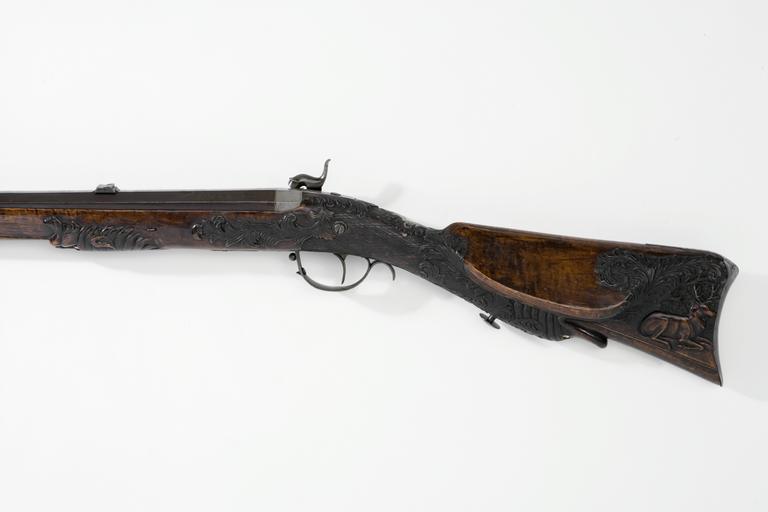 | Keywords: Detalj slaglåsstudsare - Livrustkammaren - 31103.jpg Åttsidig brunerad räfflad pipa med trumf 8 räfflor högerräffling Pipan förlängd med ett obrunerat parti tvärt avskuret svansskruvblad graverad ranka På h sida vinge med tändhattsnippel På pipans översida graverad text under Bataillen vid Wiais och Helsinge d 28/9 1808 har Befälhafvaren för Svenska Finska Gardiet Conr Åkerhjelm tagit detta gevär från en rysk Jägare vid Regem n o 1 På kammarens v sida graverad text C Å 28/9 1808 på h sida C M Af R 1825 <br/>Riktmedel Klaffsikte av blånerat stål stolpkorn av mässing båda inlaxade <br/>Fästning Pipan fäst med blånerad krysskruv samt två engelska pipstift och däremellan rembygelns skruv <br/><br/>Slaglås av stål med välvt låsbleck och graverade bladrankor på hane och låsbleck bakåtliggande slagfjäder Harmynt slaghuvud nätskuret tumgrepp På låsets insida är slagfjäder stång och stångarm vända åt samma håll <br/>Fästning En låsskruv med åttsidig bricka <br/>Svagt böjd avtryckare Avtryckarbleck framtill avslutat med en urneformig platta med blad <br/><br/>Brun helstock av trä kolv av fransk typ med kindstöd och kolvlåda kolvhalsen nätskuren Rik snidad dekor på kolvens undersida ett fiskhuvud och på framstocken en lejonmaskaron båda med inlagda pärlemorögon samt snidade bladornament Bakom kindstödet en liggande hjort På kolvens undersida en oval vitmetall-plåt silver graverad med nr 1 Kolvlådelock med snidat tumgrepp med rund blomma locket öppnas genom att trycka på blommans mitt Näsband av horn övriga beslag av stål Bakplåt med en spetsig bladgraverad flik på kolvryggen Två runda rörkor Varbygel med graverade rankor fäst på avtryckarblecket En u-formig rembygel vid bakre rörka rund knapp bakom varbygeln <br/><br/>Tillbehör <br/>Laddstock av mässing l 663 mm original caption detalj slaglåsstudsare - LRK 3669<br/> Nyckelord Slaglåsstudsare Föremålsbild Jaktvapen Gustav V - other date ca 1800 ca 1850 wood e3 - eldvapen - stock material trä - steel e1247 - eldvapen - pipa lås riktmedel och beslag material stål - mother-of-pearl e8 - eldvapen - stockdekor material pärlemor - brass e4 - eldvapen - riktmedel material mässing g 4190 size mm 670 pipa size mm 1080 LRK Oscar II av Sverige -Norge Carl Magnus af Robson bergsråd Karl XV av Sverige-Norge Gustaf V av Sverige Conrad Reinhold Åkerhielm överste place of origin original filename lm_dig2132 40201 inventory number LRK 3669 31103 CC-BY-SA Göran Schmidt <gallery caption Different images of same object > File Detalj slaglåsstudsare - Livrustkammaren - 22541 jpg File Detalj stockdekor slaglåsstudsare - Livrustkammaren - 39663 jpg File Detalj slaglåsstudsare v sida - Livrustkammaren - 48224 jpg File Detalj stockdekor slaglåsstudsare - Livrustkammaren - 48221 jpg File Detalj slaglåsstudsare - Livrustkammaren - 39666 jpg File Detalj stockdekor slaglåsstudsare - Livrustkammaren - 65343 jpg File Detalj stockdekor slaglåsstudsare - Livrustkammaren - 56782 jpg </gallery> Göran Schmidt Gustav V of Sweden Musket images from Livrustkammaren color images Flintlock muskets images from Livrustkammaren Media contributed by LSH unmatched material Media contributed by LSH dim-with multiple size templates Media contributed by LSH unmatched keyword Color images from Livrustkammaren Percussion muskets images from Livrustkammaren Media contributed by LSH 2013-10 |