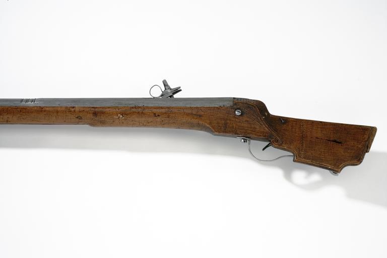 | Keywords: Detalj stock hjullåsbössa, v sida - Livrustkammaren - 74859.jpg Rund slätborrad pipa med åttsidig kammare vid övergången två ringar kantade med smalare ringar Tvärt avskuret svansskruvblad På kammarens undersida inhugget streck på underfasen VIII till h därom IIII <br/>Inlaxade riktmedel mässingsplatta fot för sikte knoppkorn av koppar <br/>Fästning Tre häften Pipan fäst med krysskruv underifrån samt ett pipstift av ben <br/><br/>Hjullås av tysk typ med plant låsbleck bakänden utdragen i en spets Utvändigt hjul fäst med ring och skruvar kl 3 och 9 9-skruven saknas Fängpanna med horisontell skålning på gaveln hög svagtböjd krutskärm fängpannelock med rörlig arm tryckknapp med skruvhuvud Hane med balusterformigkropp ringformig hals käkar med rundade sidor överkäken lös ringformigt grepp käkskruv med högt fyrsidigt huvud Hanfjäder med sex skålningar omväxlande på in- och utsidan bladdekor skålning i vinkeln timglasformig studel långt droppformigt fjäderlöv med liten ändknopp <br/>Fästning En låsskruv <br/>Avtryckare med fjäder på baksidan <br/><br/>Enkel helstock av trä kolv av tysk typ med vinge och kolvlåda enkel snidad volut vid vingen inskuren kantlinje samt sicksackbård tvärs över anslaget Vid svansskruvbladet längsgående rader av inskurna jack två på v sida tre på höger Plant kolvlådelock av stockens trä bakdelen 20 mm tjock fasade kanter en inskuren linje Bakplåt av trä Över laddstocksrännans framände samt som näsband mässingsband Varbygel av stål S-formigt svängd med rak bakre del bakstolpen inskruvad i kolven framänden fäst med krysskruven <br/><br/>Tillbehör <br/>Laddstock av stockens trä l 1071 mm i framänden skodd med mässing original caption detalj stock hjullåsbössa - LRK 13432 v sida century 17 wood e3 - eldvapen - stock material trä - steel e127 - eldvapen - pipa lås och stockbeslag material stål - brass e47 - eldvapen - riktmedel och stockbeslag material mässing - copper e4 - eldvapen - riktmedel material koppar size mm 14 ca g 4940 size mm 1184 pipa size mm 1438 LRK place of origin original filename lm_dig2532 50019 inventory number LRK 13432 74859 CC-BY-SA Göran Schmidt <gallery caption Different images of same object > File Detalj lås-stock hjullåsbössa - Livrustkammaren - 66297 jpg </gallery> Göran Schmidt Musket images from Livrustkammaren color images Media contributed by LSH dim-with multiple size templates Color images from Livrustkammaren Media contributed by LSH 2013-10 |