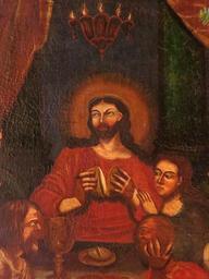 Keywords: Detalje fra maleri (Mælum Kirke).JPG Detalje fra nadveren maleri fra det 18 århundrede i Mælum Kirke Telemarken Norge own 2013-12 Orf3us Paintings of the Last Supper Mælum kirke PD-old-100