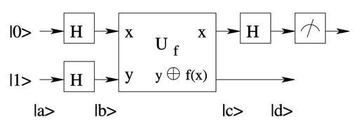 Keywords: Deutsch algorithm circuit.svg Circuit implementing Deutsch's quantum algorithm Own 2007-07-27 Fran4004 Quantum circuit