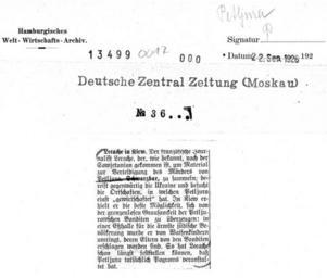 Keywords: Deutsche Zentral Zeitung article from 1926.jpg Schwartzbard the murderer of Petliura is currently traveling in the Ukraine and visiting the locales in which Petliura once kept house In Kiev he obtained the best possibility to convince himself of the boundless brutality of the Petliurian bandits in a dining hall for the poorest Jewish populace he was surrounded by orphans whose parents were slain by the bandits Thus Lecache was finally able to ascertain that Petliura actually had organized pogroms 1926-09-22 German National Library of Economics http //webopac0 hwwa de/DigiJPG/P/13499/P134990017000000H jpg Deutsche Zentral Zeitung German Central Newspaper custom PD-old Communist newspapers Uploaded with UploadWizard