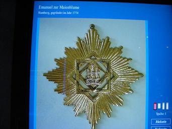 | Keywords: Deutsches Freimaurermuseum Bayreuth - inventory (273).jpg Bayreuth Deutsches Freimaurermuseum Bijou der Loge Emanuel zur Maienblume Hamburg own 2011-02-28 14 57 45 User Mattes Written and oral permission of the Director Deutsches Freimaurermuseum Mr Thad Peterson and with permission of the Museum Board of Directors -- Thank you so much Commonist Deutsches Freimaurermuseum Freemasonry in Hamburg Emanuel zur Maienblume Taken with Fujifilm FinePix S5700 Work by Mattes 2011 User Mattes/Contributions/Topics/Germany/Bayreuth User Mattes/Contributions/Topics/banners coat of arms flags logos seals and signs |