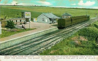 | Keywords: devils dyke devilsdyke brighton england sussex railway station railwaystation vintage postcard train refreshment room refreshmentroom outdoor road vehicle View of the railway station showing train ready to start for Brighton. The quaint Refreshment Room on the left is kept by an old railway guard. The Dyke railway station was a railway station near Devil's Dyke in West Sussex, England which opened in 1887 and closed in 1939. View of the railway station showing train ready to start for Brighton. The quaint Refreshment Room on the left is kept by an old railway guard. The Dyke railway station was a railway station near Devil's Dyke in West Sussex, England which opened in 1887 and closed in 1939. |