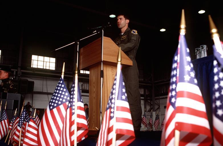 Keywords: DF-ST-98-00042.JPEG US Air Force Capt Scott F O'Grady surrounded by US Flags speaks to members of the press upon his arrival Capt O'Grady's F-16 Fighting Falcon was shot down over Bosnia on June 2 1995 while he was flying in support of Operation Deny Flight After 6 days of evasion he was rescued by US Marines from the 24th Marine Expeditionary Unit deployed from the USS KEARSAGE LHD-3 Capt O'Grady is attached to the 555th Fighter Squadron 31st Fighter Wing http //www dodmedia osd mil/DefenseLink_Search/Still_Details cfm SDAN DFST9800042 JPGPath /Assets/Still/1998/Air_Force/DF-ST-98-00042 JPG 1995-06-02 DoD photo by SRA TANA R HAMILTON PD-USGov PD-USGov-Military-Air Force Mrkonjić Grad incident Photographs of flags of the United States 555th Fighter Squadron United States Air Force |
