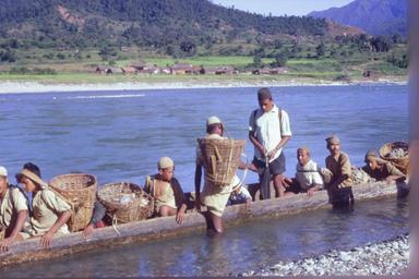 | Keywords: landscape porter river river crossing rivercrossing stream transportation nepal outdoor boat vehicle Date: 1968-11 Location: Shishaghat, Tanahun Description: Porters being loaded into a boat to cross the Madi River, on the path from Pokhara to Kunchha. Date: 1968-11 Location: Shishaghat, Tanahun Description: Porters being loaded into a boat to cross the Madi River, on the path from Pokhara to Kunchha. | ||||