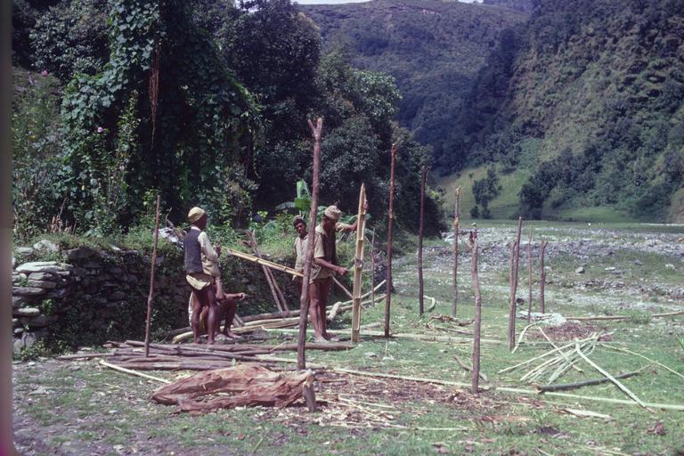 | Keywords: batti building commerce handicrafts tea shop teashop nepal outdoor Date: 1968-10 Location: Hemja, Kaski Description: Workers beginning to build a new tea shop at the bottom of Kaskikot hill near Suikhet on the footpath from Pokhara to Lumle. Date: 1968-10 Location: Hemja, Kaski Description: Workers beginning to build a new tea shop at the bottom of Kaskikot hill near Suikhet on the footpath from Pokhara to Lumle. | ||||