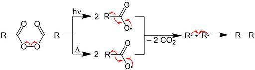 Keywords: Diacylperoxide Reaction V.2.svg en Diacylperoxide_Reaction de Diacylperoxid-Zerfall own Jü 2012-07-06 Thermolysis Photolysis Peroxides Cc-zero